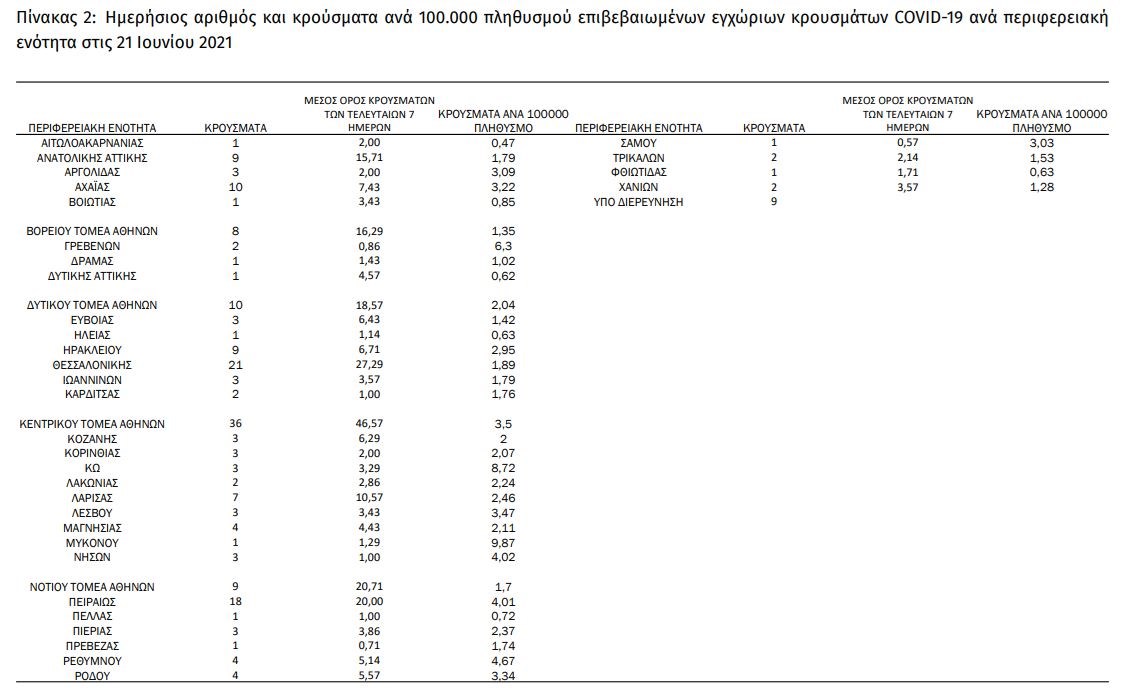 Η κατανομή των 205 νέων εγχώριων κρουσμάτων ανά Περιφερειακή Ενότητα παρουσιάζεται στον παρακάτω πίνακα:
