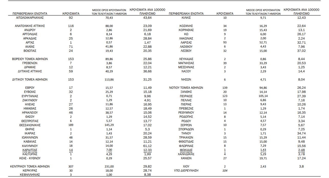 Η γεωγραφική κατανομή των νέων κρουσμάτων