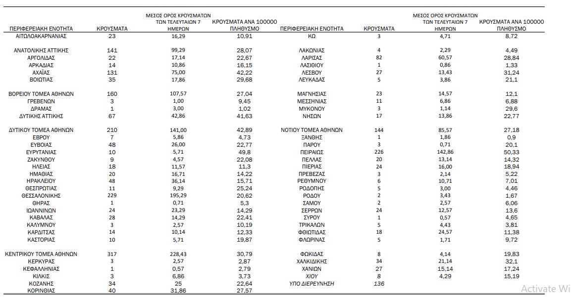 Υψηλά τα νούμερα και σε Αργολίδα (22), Αρκαδία (14), Εύβοια (48), Ηράκλειο (48), Κοζάνη (34), Κορινθία (40), Λάρισα (82), Λέσβο (27), Πιερία (24), Χανιά (27) και Χαλκιδική (34).