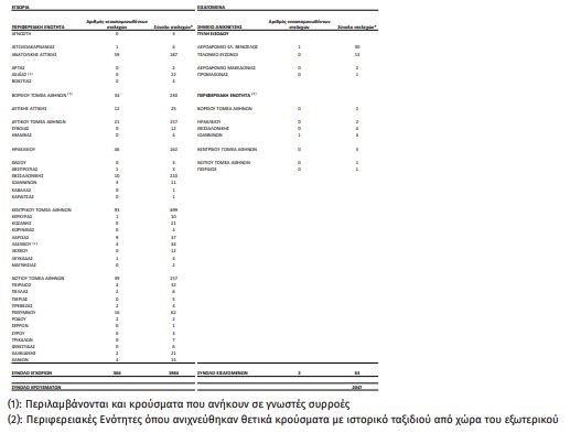 Υψηλά τα νούμερα και σε Αργολίδα (22), Αρκαδία (14), Εύβοια (48), Ηράκλειο (48), Κοζάνη (34), Κορινθία (40), Λάρισα (82), Λέσβο (27), Πιερία (24), Χανιά (27) και Χαλκιδική (34).