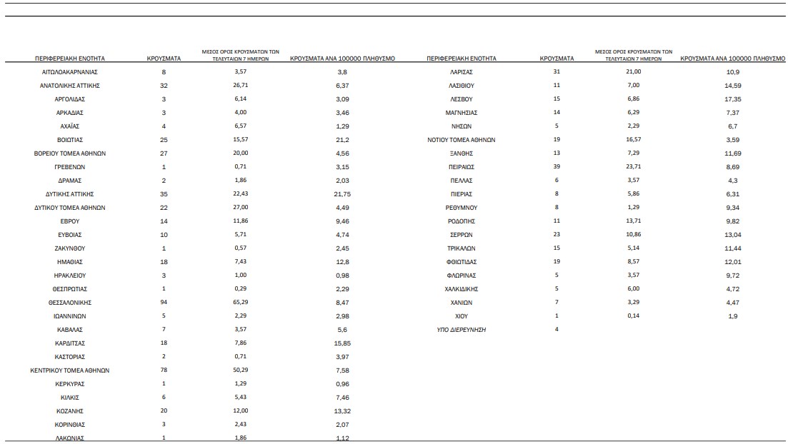 Δείτε τον αριθμό των νέων κρουσμάτων ανά Περιφερειακή Ενότητα: