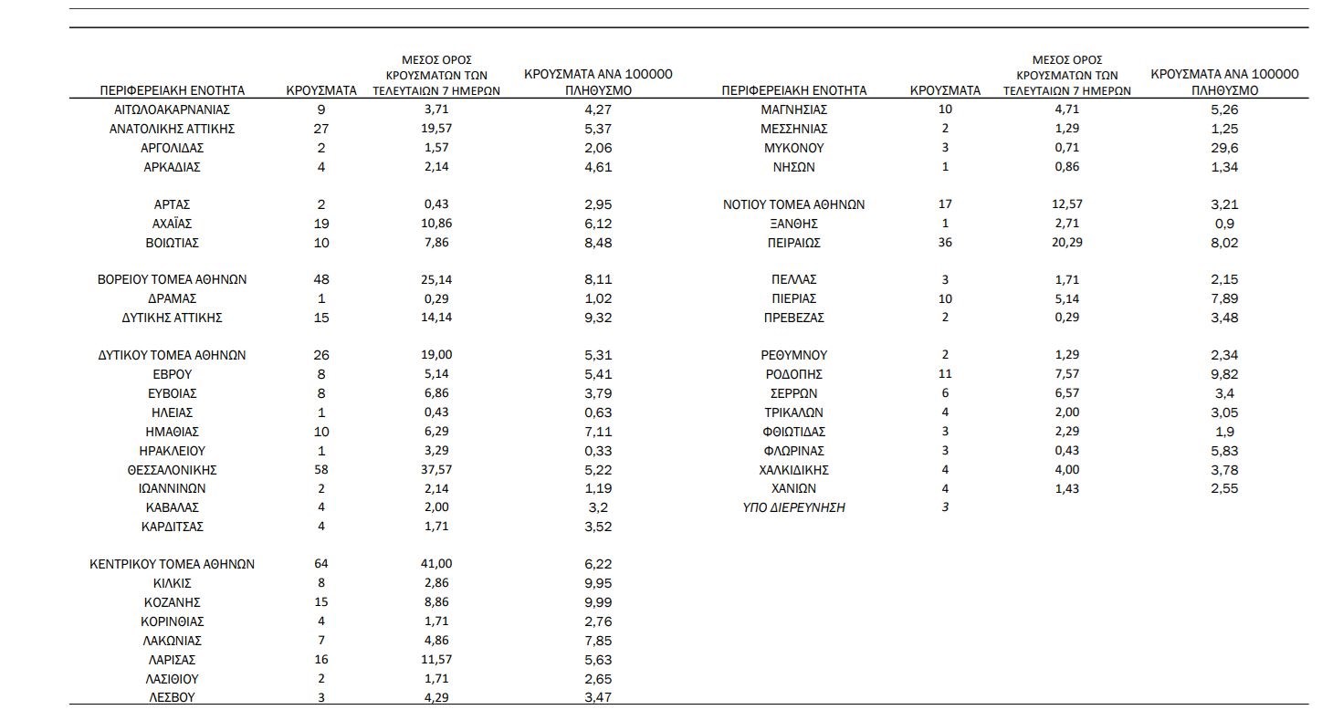 Η γεωγραφική κατανομή των νέων κρουσμάτων