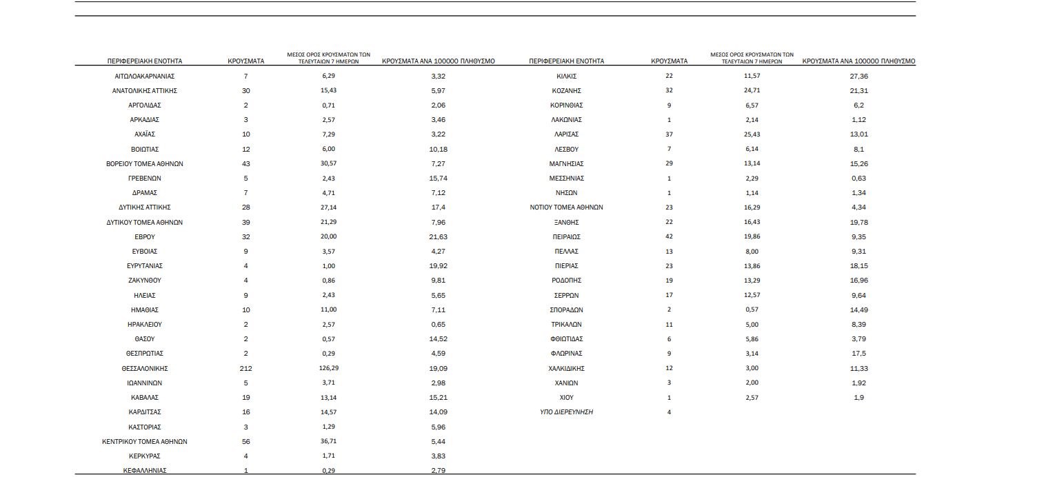 23 κρούσματα στην Π.Ε. Πιερίας
