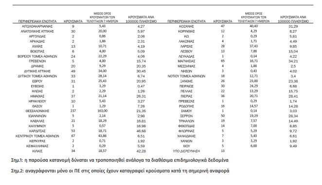Η γεωγραφική κατανομή των νέων κρουσμάτων