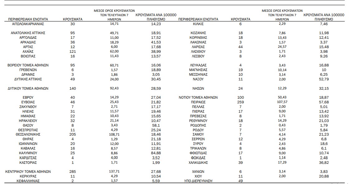 Η γεωγραφική κατανομή των νέων κρουσμάτων