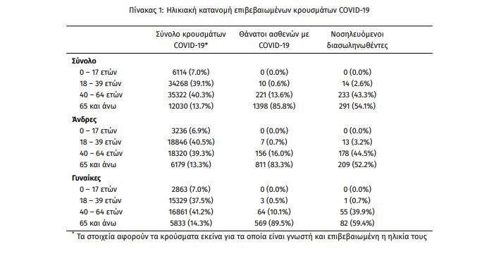 Οι 221 νεκροί ανήκαν στην ηλικιακή ομάδα 40-64 ετών και οι 1.398 ήταν 65 ετών και άνω: