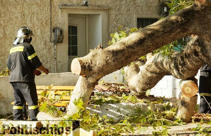 Άμεσα ειδοποιήθηκε η πυροσβεστική που έφθασε στο σημείο με 1 όχημα και 6 πυροσβέστες που με πριόνια στα χέρια προσπάθησαν να τεμαχίσουν τον κορμό του δέντρου ώστε να τον απομακρύνουν από το σημείο.