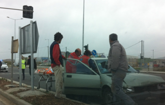 Μία ηλικιωμένη γυναίκα τραυματίστηκε σε τροχαίο ατύχημα σήμερα το μεσημέρι στην περιοχή του Απαλού στον Έβρο.Συγκεκριμένα, οδηγός ΙΧ πάτησε απότομα φρένο στο φανάρι με αποτέλεσμα η συνοδηγός του από πίσω οχήματος να εκτιναχθεί από το παρμπρίζ του αυτοκινήτου.Αιμόφυρτη η γυναίκα μεταφέρθηκε άμεσα στο ΠΓΝΑ από ασθενοφόρο του ΕΚΑΒ, το οποίο έσπευσε άμεσα στον τόπο του τρακαρίσματος.Σύμφωνα με τις πρώτες πληροφορίες δεν συντρέχει λόγος ανησυχίας για την υγεία της. Η φωτογραφία από το τόπο του ατυχήματος, όπου φαίνεται το σπασμένο παρμπρίζ: