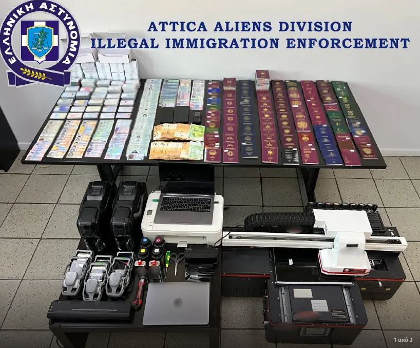 Όπως προέκυψε από την έρευνα, τα μέλη της οργάνωσης, τουλάχιστον από τον Μάρτιο του 2023, λειτουργούσαν υπερσύγχρονο εργαστήριο κατάρτισης πλαστών εγγράφων, ακόμα και νέου τύπου με τη μορφή πλαστικής κάρτας, ώστε να διευκολύνουν την παράνομη είσοδο – έξοδο μεταναστών στη χώρα, αποκομίζοντας έτσι οικονομικό όφελος που ανερχόταν από -4.500- έως -6.000- για κάθε άτομο.