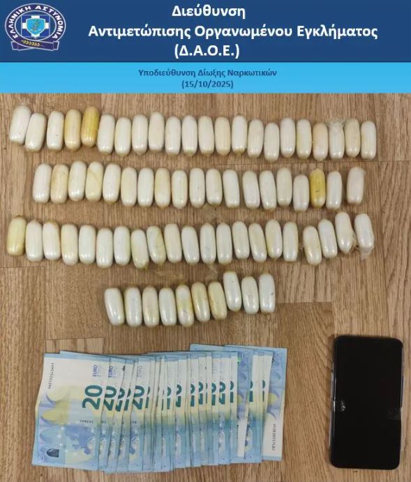 Χειροπέδες σε έναν 22χρονο αλλοδαπό, ο οποίος είχε καταπιεί 72 συσκευασίες που περιείχαν 840 γραμμάρια κοκαΐνης, προχώρησαν το απόγευμα της Τετάρτης (15/10) αστυνομικοί της Υποδιεύθυνσης Δίωξης Ναρκωτικών της Διεύθυνσης Αντιμετώπισης Οργανωμένου Εγκλήματος στο αεροδρόμιο «Ελ. Βενιζέλος».