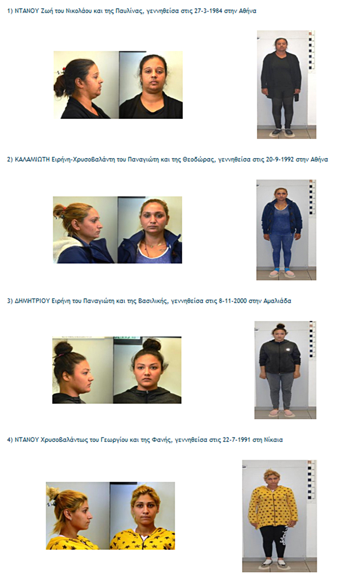 Η Ελληνική Αστυνομία έδωσε στη δημοσιότητα τα στοιχεία των τεσσάρων γυναικών μελών εγκληματικής ομάδας που διέπρατταν διαρρήξεις και κλοπές με τη μέθοδο της απασχόλησης.