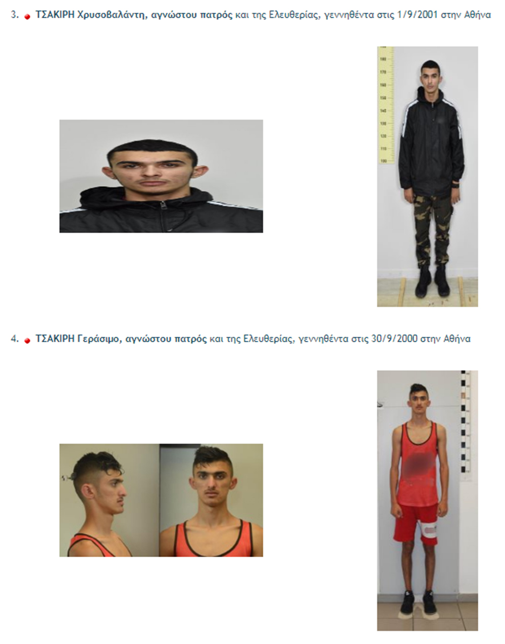 Στη δημοσιότητα έδωσε η ΓΑΔΑ, κατόπιν σχετικής Διάταξης της Εισαγγελίας Πλημμελειοδικών Αθηνών τα στοιχεία ταυτότητας και τις φωτογραφίες, τεσσάρων Ρομά που διέπρατταν ληστείες και κλοπές σε σπίτια σε διάφορες περιοχές των νοτίων προαστίων. .