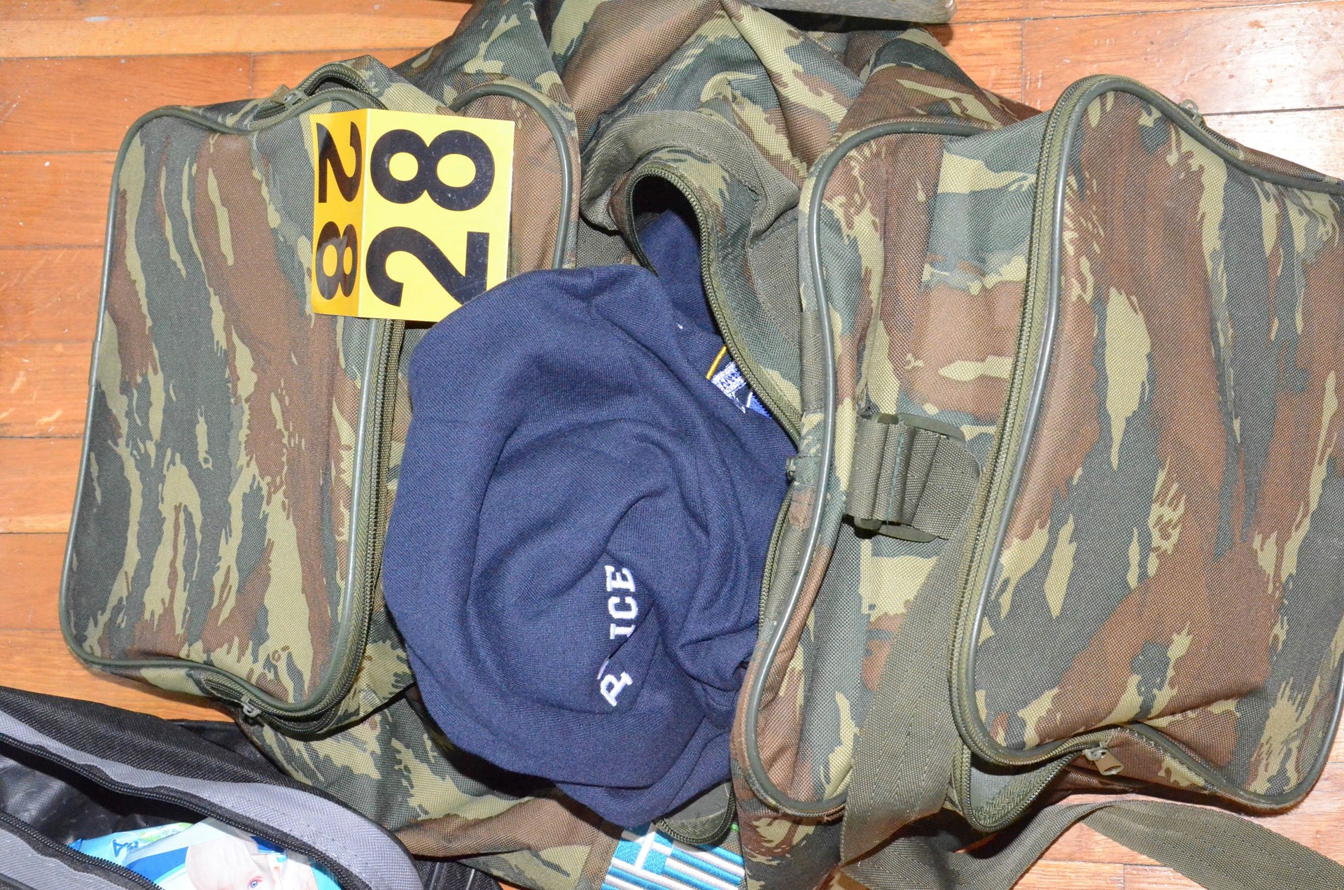 -2 πλήρεις αστυνομικές στολές, εκρηκτική ύλη, πυροκροτητής κ.λπ. αντικείμενα.