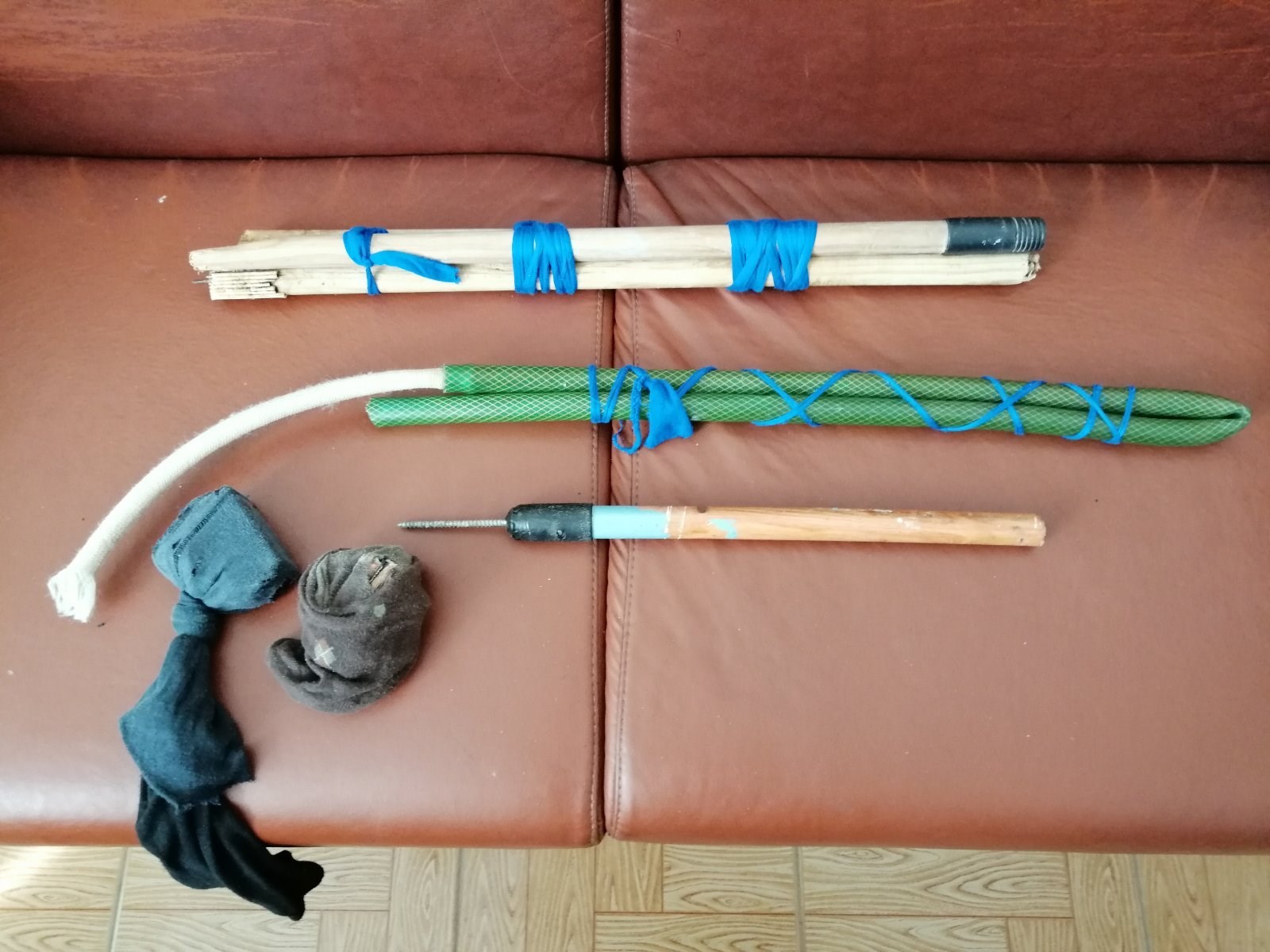 - (2) ξύλινα ρόπαλα.