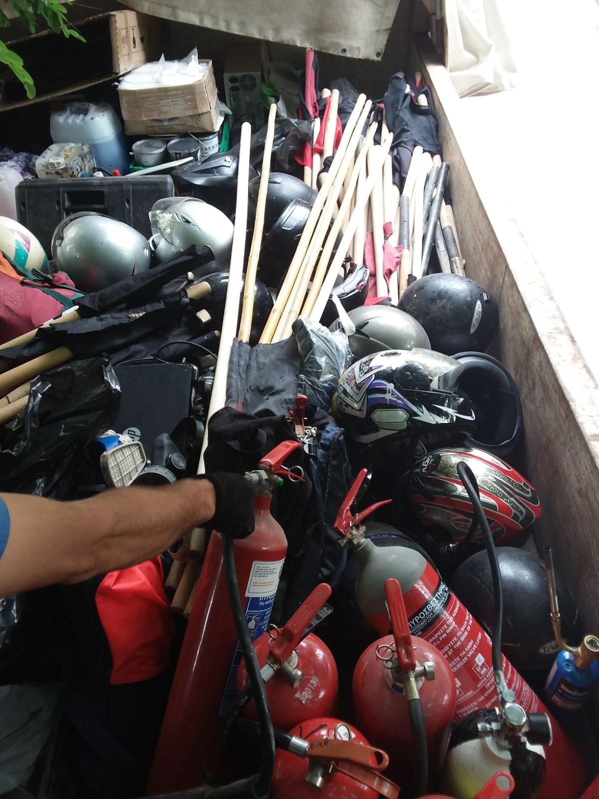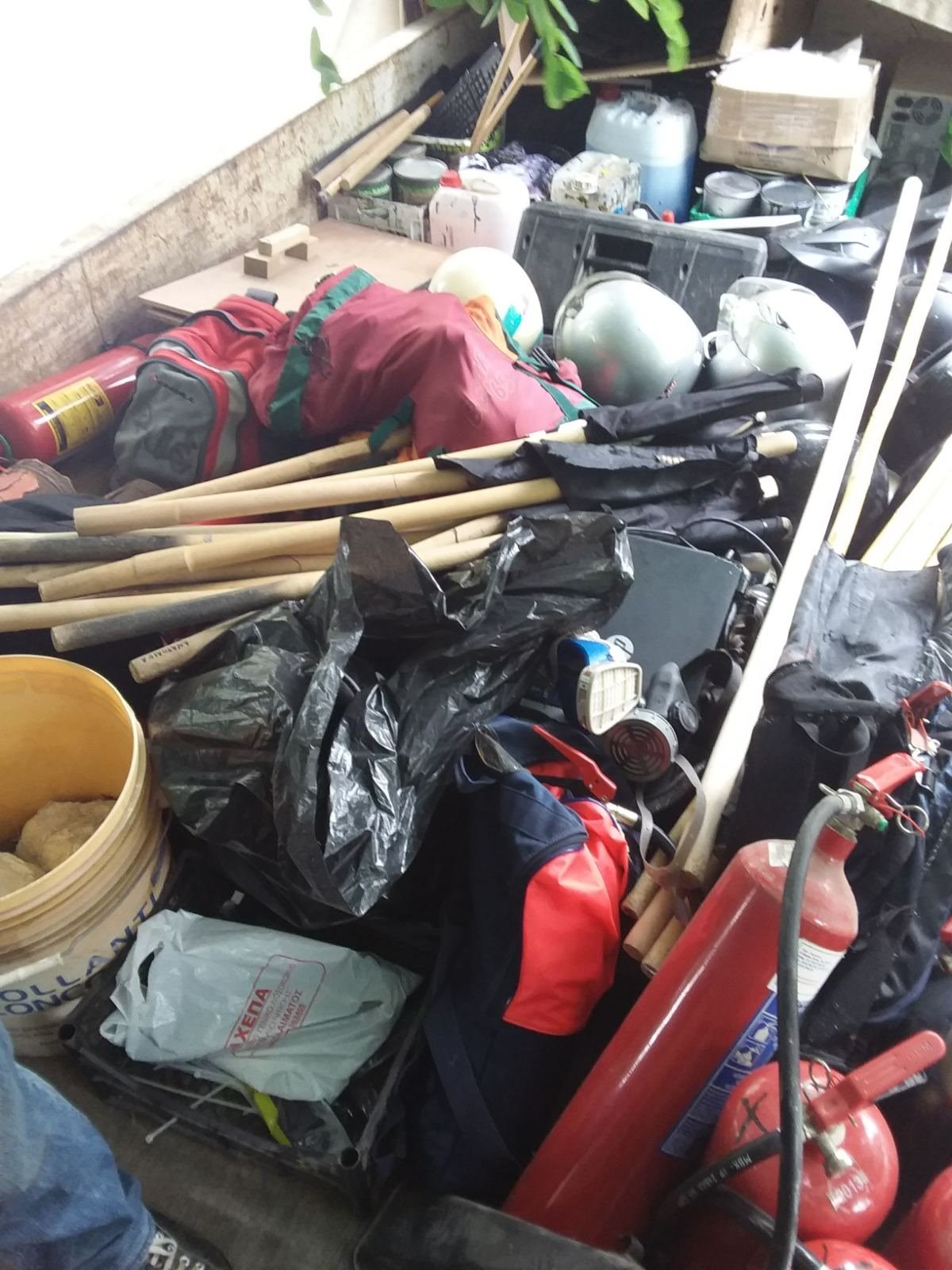 - πλήθος από κράνη, πυροσβεστήρες και αντιασφυξιογόνες μάσκες,