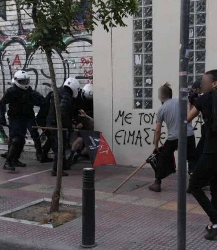“Μετά το πέρας χθεσινής συγκέντρωσης στην πλατεία Βικτωρίας, ομάδα (100) περίπου ατόμων, αφού απομακρύνθηκαν από τον χώρο της συγκέντρωσης, κινήθηκαν προς την οδό Πατησίων, κρατώντας ξύλινα καδρόνια και έχοντας οι περισσότεροι εξ αυτών καλυμμένα τα χαρακτηριστικά των προσώπων τους με κράνη.