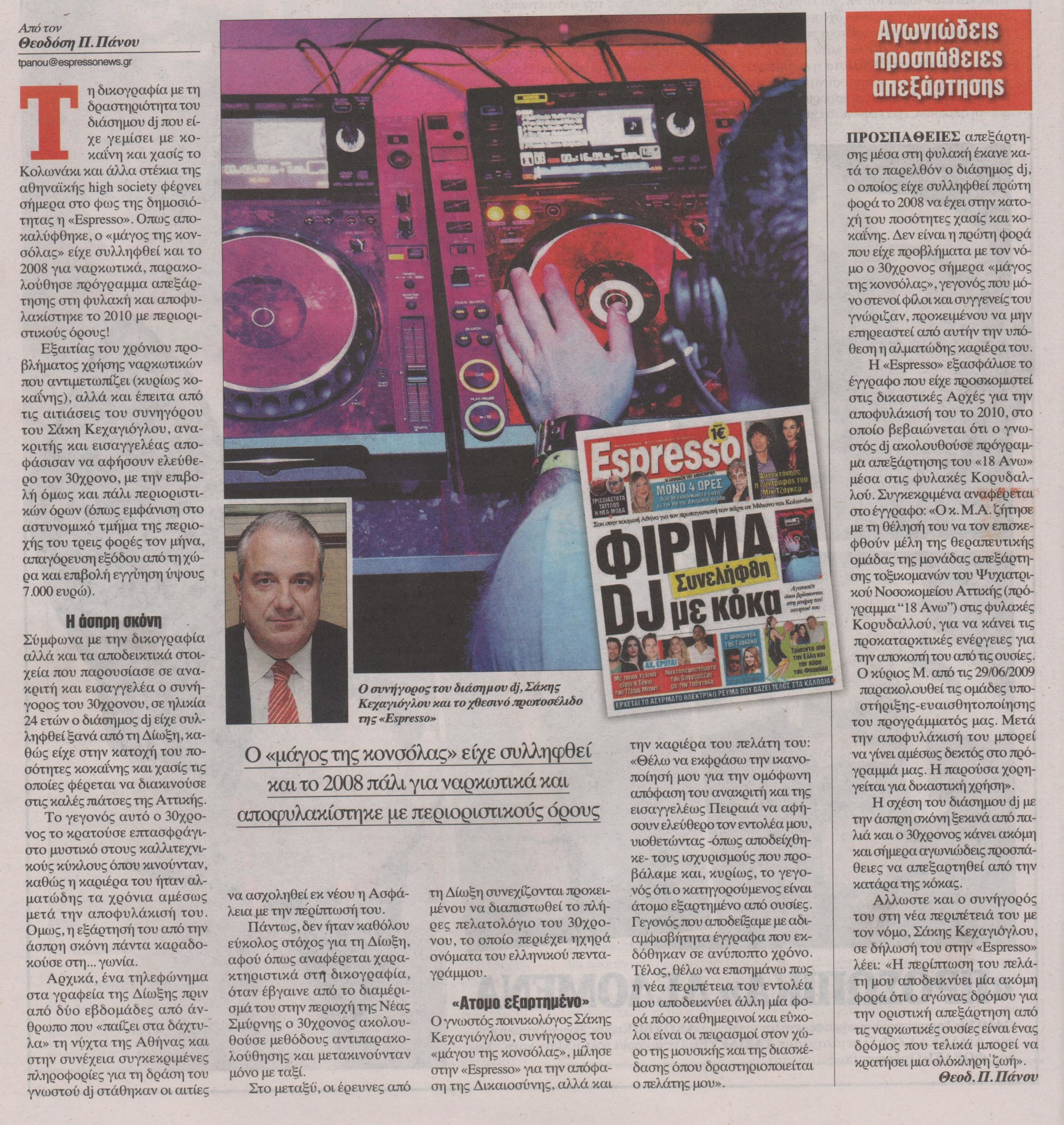 Τη δικογραφία με τη δραστηριότητα του διάσημου dj που είχε γεμίσει με κοκαΐνη και χασίς το Κολωνάκι και άλλα στέκια της αθηναϊκής high society φέρνει σήμερα στο φως της δημοσιότητας η Espresso.