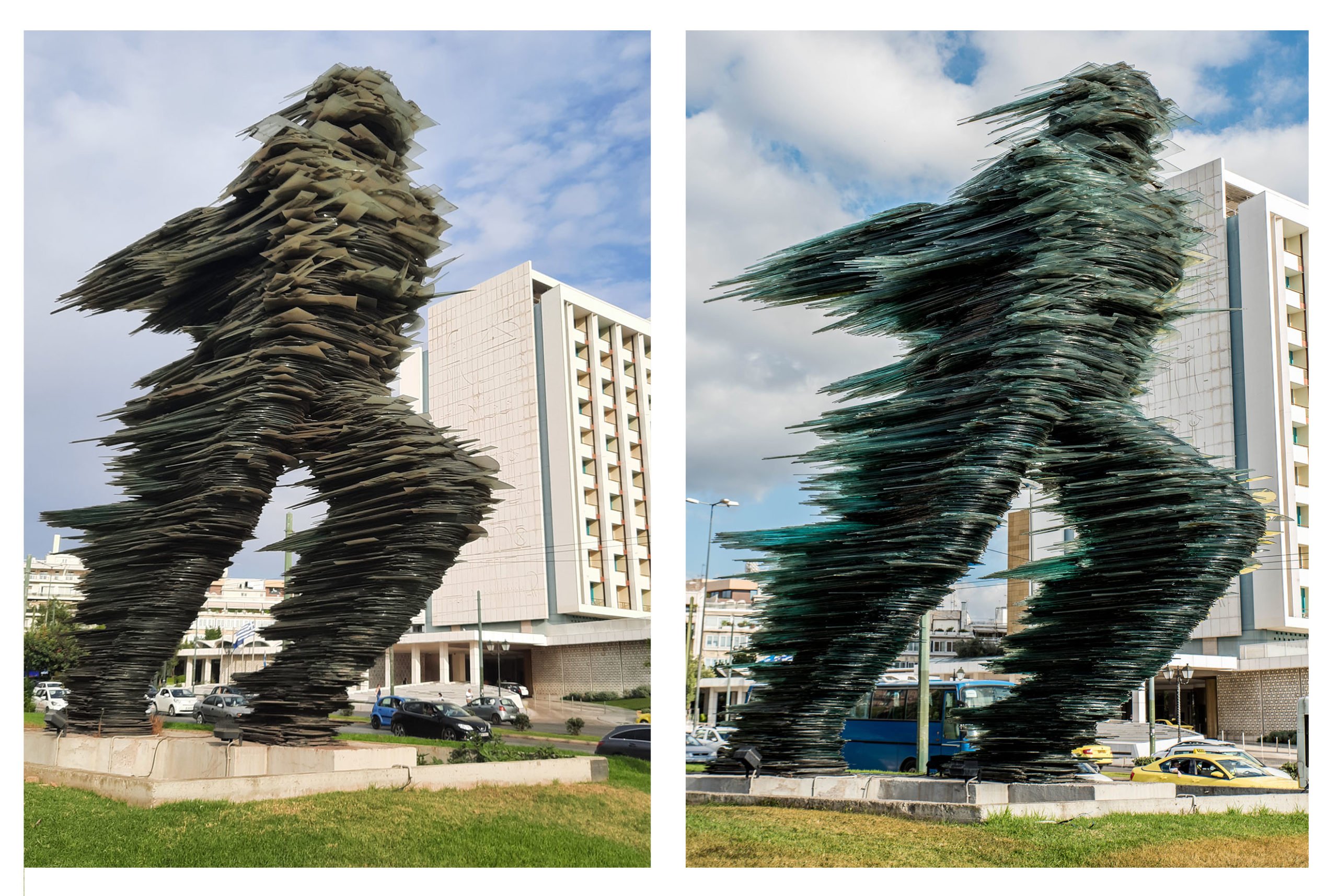 Με μια απαιτητική διαδικασία σε τρεις φάσεις, που διήρκησε συνολικά περίπου 15 ώρες, και παρουσία του γλύπτη Κώστα Βαρώτσου καθαρίστηκε ο “Δρομέας“. Πρόκειται για το γυάλινο γλυπτό, που από το 1995 κοσμεί την πλατεία της Μεγάλης του Γένους Σχολής, απέναντι από το ξενοδοχείο “Χίλτον”, στην Αθήνα.