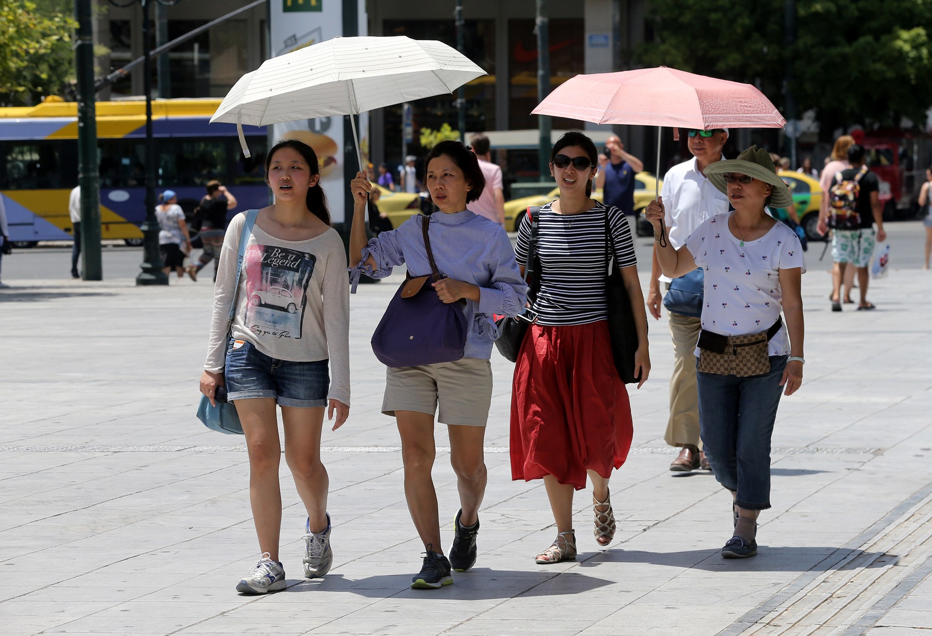 Οι ξένοι τουρίστες που επισκέπτονται κάθε χρόνο τη χώρα μας, δείχνουν να λατρεύουν το κλίμα της Ελλάδας, όμως φαίνεται ότι σήμερα δεν ευχαριστήθηκαν ιδιαίτερα τη βόλτα τους στο κέντρο της Αθήνας, καθώς οι υψηλές θερμοκρασίες τους έκαναν να ψάχνουν ένα δροσερό μέρος για να καθίσουν.Προσπαθούσαν να βρουν ένα σημείο δροσιάς ή μία σκιά για να γλιτώσουν από τον καυτό ήλιο.Μάλιστα, πολλοί από αυτούς κρατούσαν και ομπρέλες, ή έριχναν ακόμη και νερό πάνω τους από το συντριβάνι στην Πλατεία Συντάγματος.