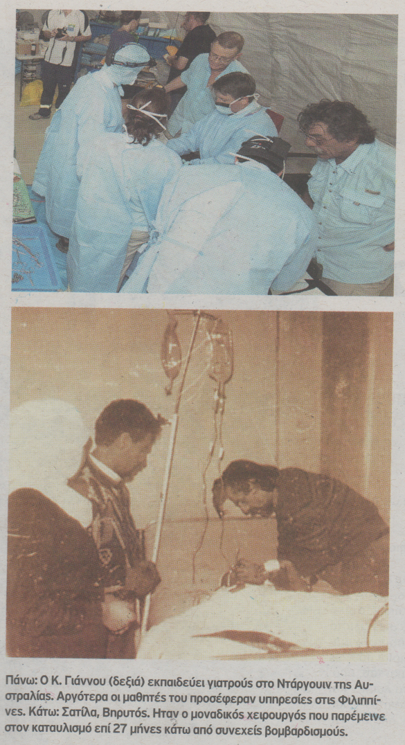«Τα τραύματα, οι πληγές του πολέμου διαφέρουν από τα ατυχήματα. Η παθολογία δεν είναι ίδια. Εργάζεσαι με ελάχιστα μέσα και αν έχεις μια απλή ακτινογραφία είναι θαύμα. Χωρίς συνθήκες υγιεινής και εν μέσω των αντιμαχόμενων πλευρών» σημειώνει ο κ. Γιάννου που αν και συνταξιούχος ετοιμάζει νέες αποστολές στην Ιορδανία., τη Συρία ή στο Ντάργουιν της Αυστραλίας. Πρόσφατα είχε προσφέρει τις γνώσεις του στην ομάδα ιατρών που παρενέβη άμεσα στις Φιλιππίνες μετά τον τυφώνα.