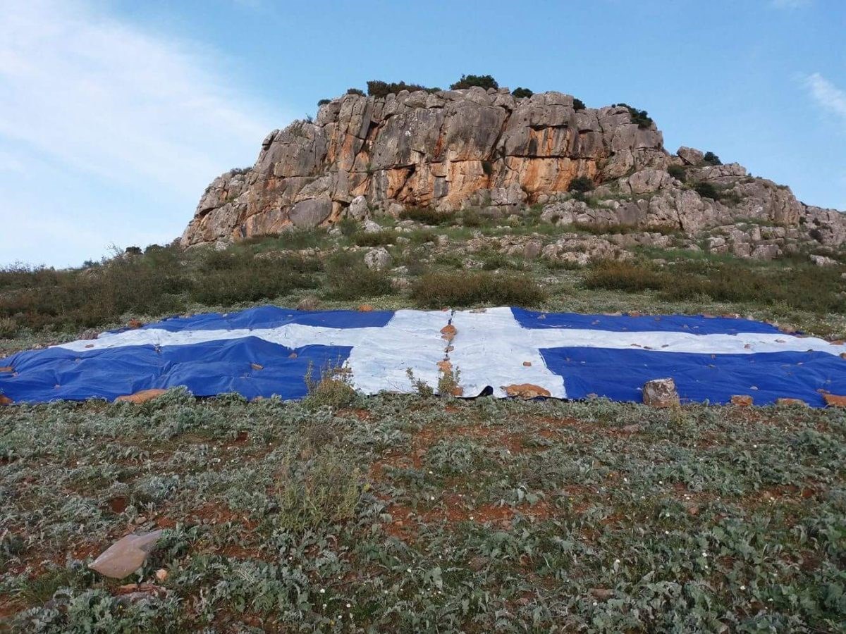 Μία τεράστια ελληνική σημαία 200 τετραγωνικών μέτρων τοποθέτησαν στο λόφο Σούρλα στα Φάρσαλα το Σάββατο. Ο λόφος Σούρλα βρίσκεται ανατολικά των Φαρσάλων και είναι πετρώδης και βραχώδης.