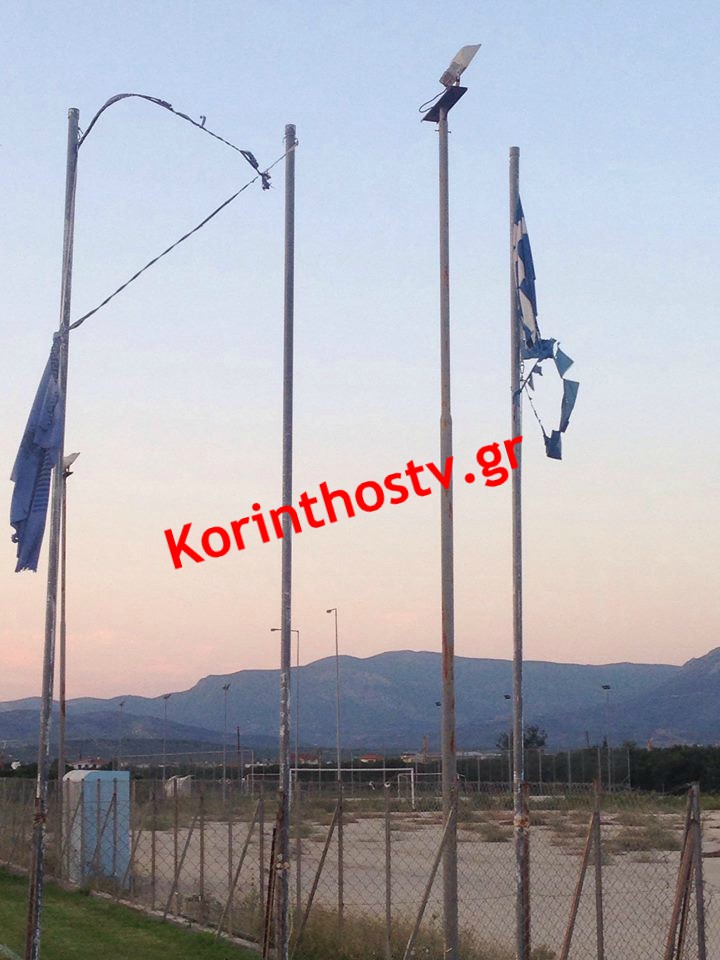 Αλγεινή εντύπωση προκαλεί η εικόνα με την σκισμένη ελληνική σημαία που κυματίζει στο γήπεδο του Κουτσοποδίου του Δήμου Άργους – Μυκηνών.