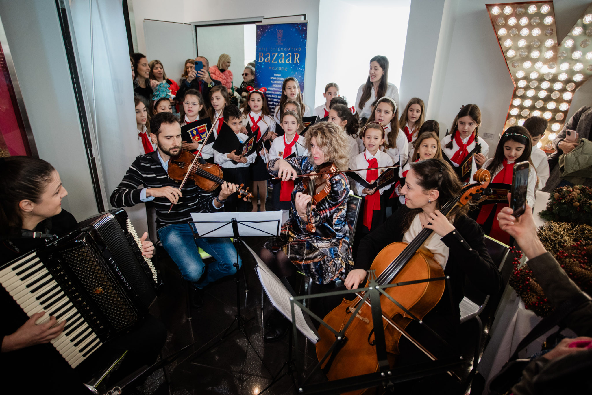 Ιδιαίτερα ξεχωριστή ήταν η έναρξη του φετινού Bazaar με τις παιδικές φωνές της Χορωδίας του Δημοτικού Σχολείου του Κολλεγίου Αθηνών, μέλη του ELPIDA Junior, που τραγούδησαν χριστουγεννιάτικες μελωδίες, προσφέροντας χαμόγελα συγκίνησης στους παρευρισκόμενους, ενώ σημαντική ήταν η παρουσία του ραδιοφωνικού σταθμού MyRadio 104,6 και της εκπομπής “The Mappes Show”, του Δημήτρη Ουγγαρέζου και των συνεργατών του, που εξέπεμπαν ζωντανά από τον χώρο του Bazaar, στο πλαίσιο του 7ήμερου ραδιομαραθωνίου για την «ΕΛΠΙΔΑ».