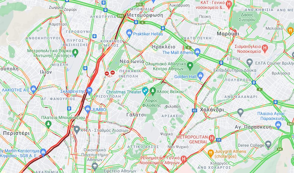 Αυτήν την ώρα το μεγαλύτερο πρόβλημα εντοπίζεται στον Κηφισό όπου η κυκλοφορία διεξάγεται με δυσκολία και στα δύο ρεύματα. Όπως φαίνεται και στον χάρτη, στις 8 το πρωί, η λεωφόρος Κηφισού είναι τμηματικά στο “κόκκινο” γεγονός που σημαίνει ότι επικρατεί μεγάλο μποτιλιάρισμα.
