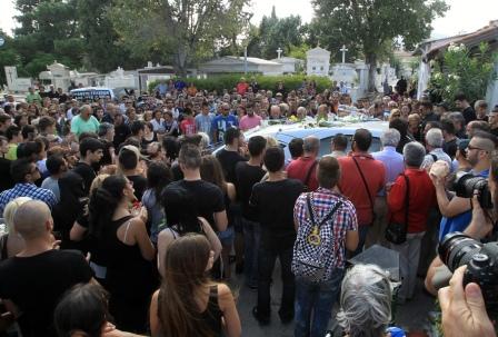 Το απόγευμα της Παρασκευής, συγγενείς, φίλοι, αλλά και εκατοντάδες πολίτες από διάφορες περιοχές της Αττικής, είπαν το «τελευταίο αντίο» στο αδικοχαμένο παλικάρι. Φωνάζοντας συνθήματα κατά του ελεγκτή, του οδηγού του τρόλεϊ, της λιτότητας και της πολιτείας, πλήθος νέων παρέμειναν, για αρκετή ώρα, στον τάφο του 19χρονου.