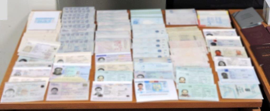 Από την έρευνα στο εργαστήριο, εκτός του εξοπλισμού, βρέθηκαν και κατασχέθηκαν ενδεικτικά 61 πλαστά διαβατήρια, 38 δελτία ταυτότητας, τρείς άδειες διαμονής, τέσσερις άδειες ικανότητας οδήγησης και αρκετές φωτογραφίες τύπου διαβατηρίου.
