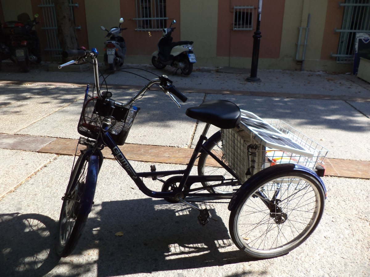 Την ίδια τεχνική χρησιμοποίησε και στο μεταφορικό του όχημα: ένα ποδήλατο τρίκυκλο που βρήκε στα σκουπίδια, το έκανε «ηλιο-κίνητο». Το χρησιμοποιεί τα τελευταία χρόνια, κάνει καθημερινά 70 χιλιόμετρα και δε χαλάει ούτε ευρώ για βενζίνη!