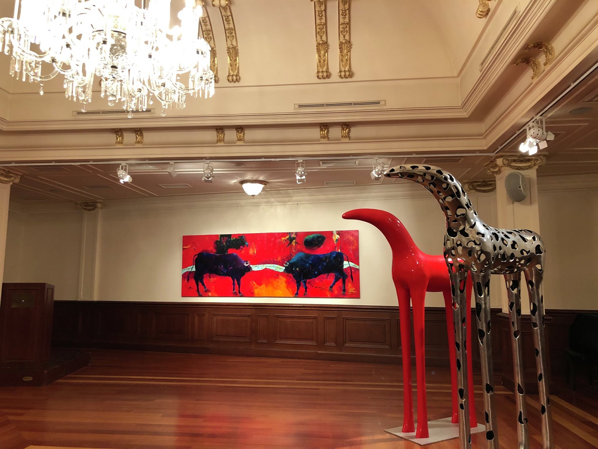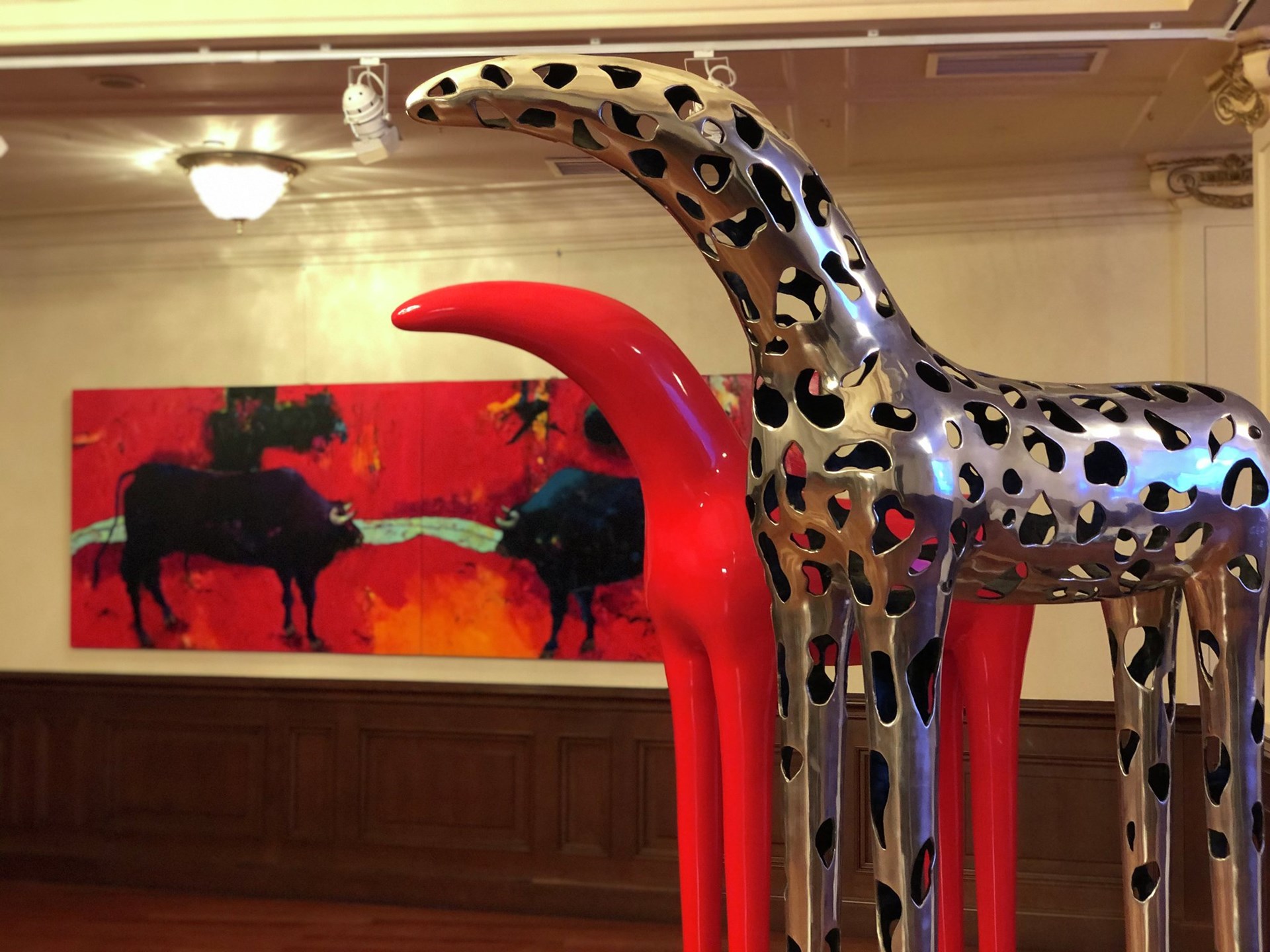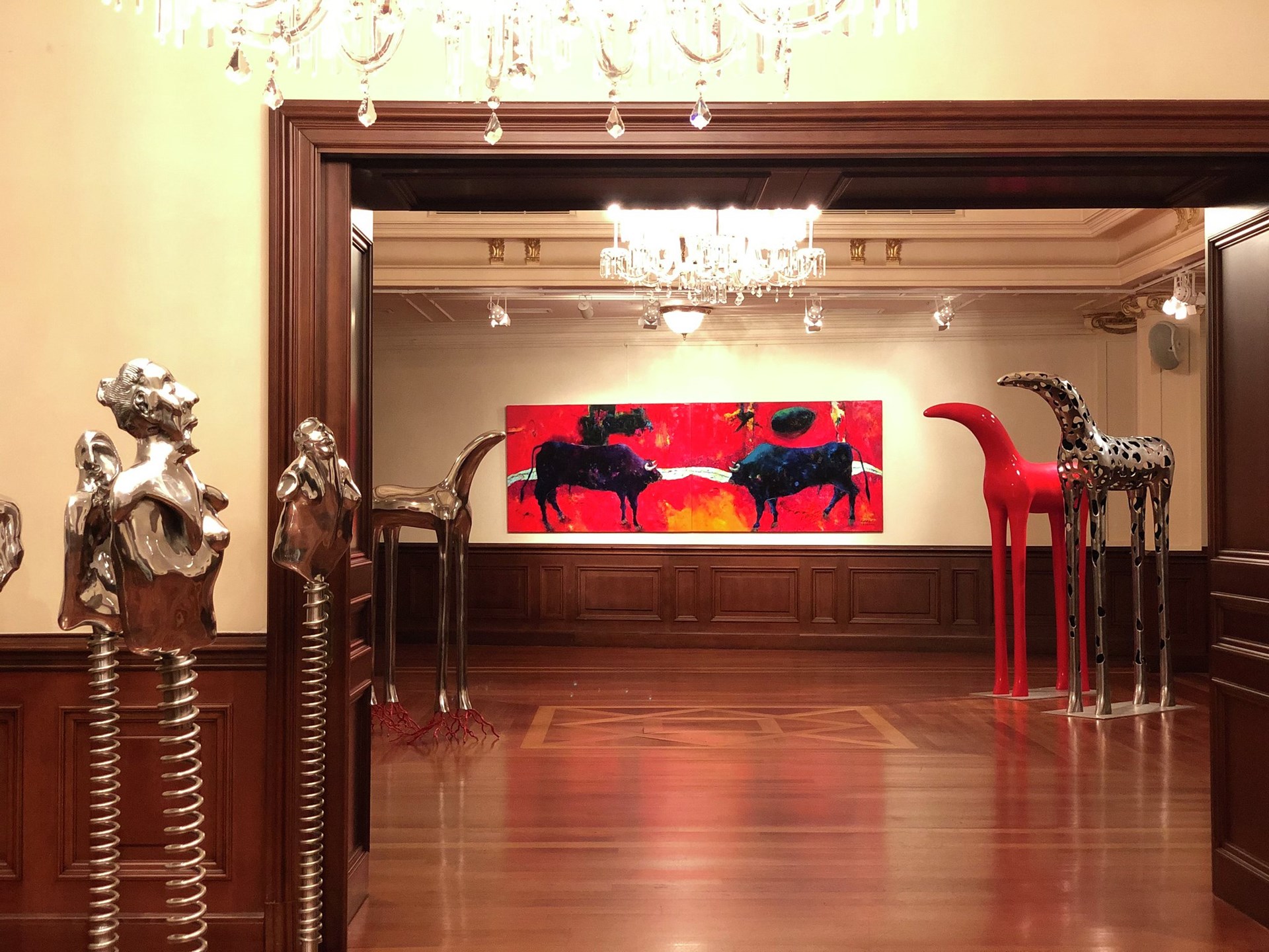 Επίσης για πρώτη φορά θα παρουσιαστεί η μεγάλη του γλυπτική εγκατάσταση «9 Μούσες», (σύγχρονη απεικόνιση των εννιά Μουσών της Μυθολογίας) και η εγκατάσταση «Pombi A ́» που αποτελείται από διάτρητα σκυλιά.