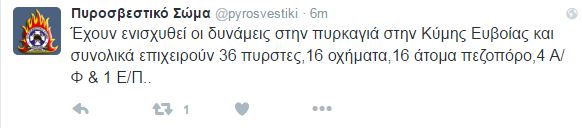 Αυτή την ώρα στο σημείο επιχείρουν 36 πυροσβέστες με 16 οχήματα, 16 άτομα πεζοπόρο, ένα αεροσκάφος και ένα ελικόπτερο.