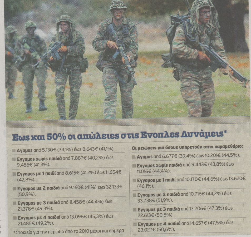 Έως και 50% φθάνουν οι απώλειες στις οικονομικές απολαβές των στρατιωτικών που υπηρετούν στις Ένοπλες Δυνάμεις της χώρας.