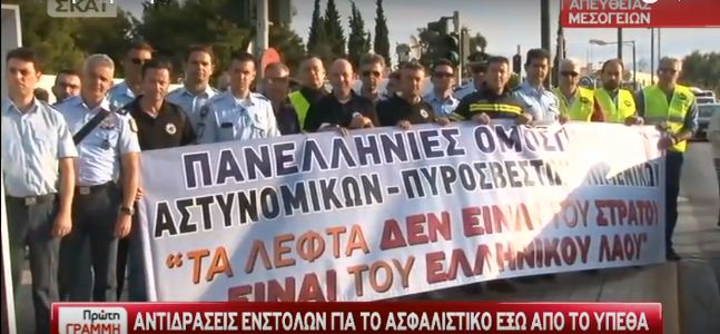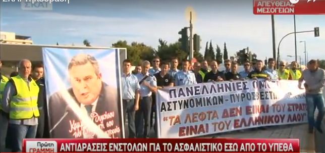 Από νωρίς το πρωί, τα προεδρεία των σωματίων ασφαλείας πραγματοποιούν παράσταση διαμαρτυρίας έξω από το κτίριο του υπουργείου Εθνικής Άμυνας, αντιδρώντας για τις μειώσεις στα μισθολόγια τους.