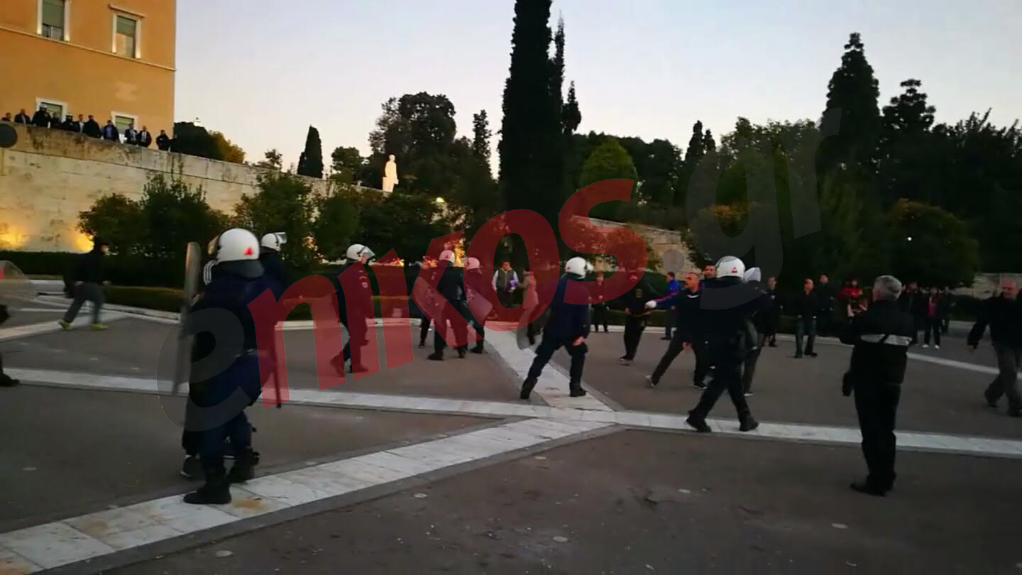 Ένταση επικράτησε έξω από τη Βουλή λίγο πριν από την προγραμματισμένη συγκέντρωση διαμαρτυρίας για τις ποινές που επιβλήθηκαν στον Αρχιμανδρίτη Μεθόδιο και άλλους μοναχούς της παλαιάς αδελφότητας της Μονής Εσφιγμένου Αγίου Ορους.