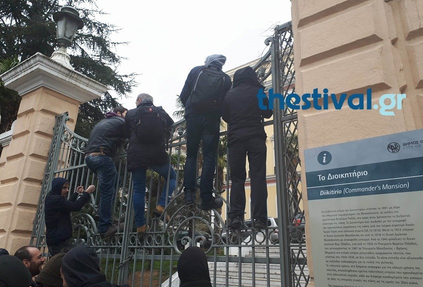 Ένταση επικράτησε έξω από το υπουργείο Μακεδονίας- Θράκης κατά τη διάρκεια διαδήλωσης μελών του Συντονισμού Συλλογικοτήτων Θεσσαλονίκης ενάντια στους πλειστηριασμούς.