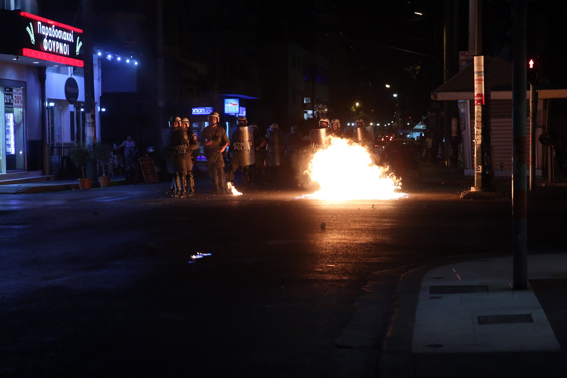 Η απάντηση των αστυνομικών ήταν άμεση. Οι άνδρες των ΜΑΤ έκαναν χρήση δακρυγόνων και χειροβομβίδων κρότου λάμψης, ώστε να απομακρύνουν το πλήθος.