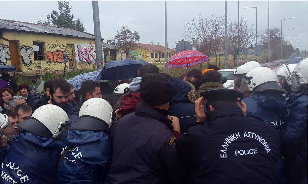 Επεισόδια σημειώθηκαν πριν από λίγο έξω από το στρατόπεδο Παύλου Μελά, στη δυτική Θεσσαλονίκη, όταν δυνάμεις των ΜΑΤ θέλησαν να απομακρύνουν τα μέλη των Λαϊκών Επιτροπών δυτικής Θεσσαλονίκης, τα οποία πραγματοποιούσαν διαμαρτυρία στο σημείο.Ένταση επικράτησε ανάμεσα σε διαδηλωτές και αστυνομικούς των ΜΑΤ. Έχει σημειωθεί τουλάχιστον μία προσαγωγή.Να σημειωθεί πως σε λίγη ώρα ο πρωθυπουργός, Αλέξης Τσίπρας, αναμένεται να ανακοινώσει την απόδοση του στρατοπέδου στην τοπική κοινωνία.Δείτε τα βίντεο και τις φωτογραφίες: