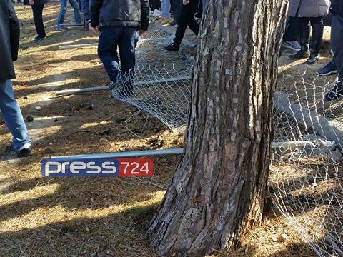 Ένταση πριν από λίγο στη συγκέντρωση κατοίκων στη Σίνδο ενάντια στη δημιουργία Κέντρου Μετεγκατάστασης Προσφύγων. Μερίδα των διαδηλωτών γκρέμισε μέρος της περίφραξης, με τις ισχυρές αστυνομικές δυνάμεις να βρίσκονται σε ετοιμότητα.