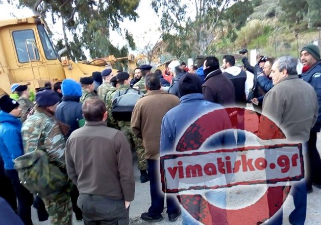 Λίγο αργότερα, έφτασαν στο σημείο και χειριστές των μηχανημάτων του στρατού, οι οποίοι τελικά κατάφεραν να περάσουν, μετά από διαβουλεύσεις με τους κατοίκους.