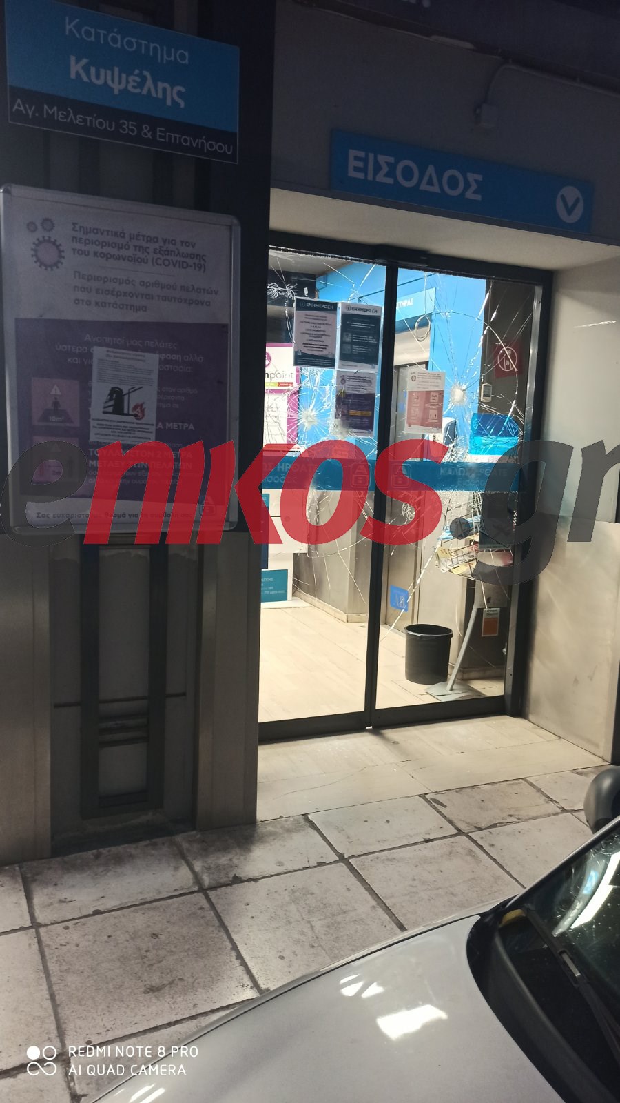 Οι άγνωστοι προκάλεσαν ζημιές και σε υποκατάστημα τράπεζας στη Φωκίωνος Νέγρη. Επίσης, σύμφωνα με την αστυνομία, προκάλεσαν φθορές σε μηχάνημα ΑΤΜ όπως και σε ένα σταθμευμένο όχημα. Στην περιοχή υπήρξαν άτομα που φώναζαν με ντουντούκες “ανυπακοή”.