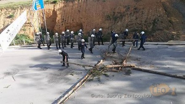 Το πρωί, οι διαμαρτυρόμενοι έκλεισαν τον δρόμο, στο Χοντρό Δέντρο, στη διασταύρωση που οδηγεί για Σκουριές, τοποθετώντας κλαδιά και κορμούς δέντρων στο σημείο.