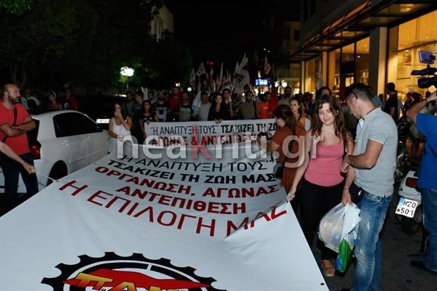 Έκρυθμη ήταν η κατάσταση στην πλατεία Ελευθερίας στο Ηράκλειο με τους τους διαδηλωτές να φωνάζουν την αγανάκτηση τους για τις πολιτικές της κυβέρνησης.