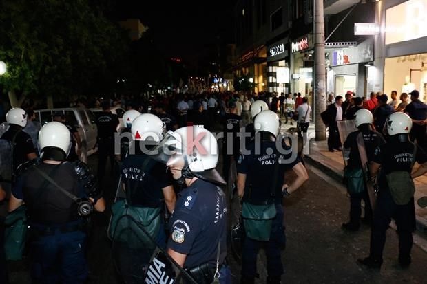 Έκρυθμη ήταν η κατάσταση στην πλατεία Ελευθερίας στο Ηράκλειο με τους τους διαδηλωτές να φωνάζουν την αγανάκτηση τους για τις πολιτικές της κυβέρνησης.