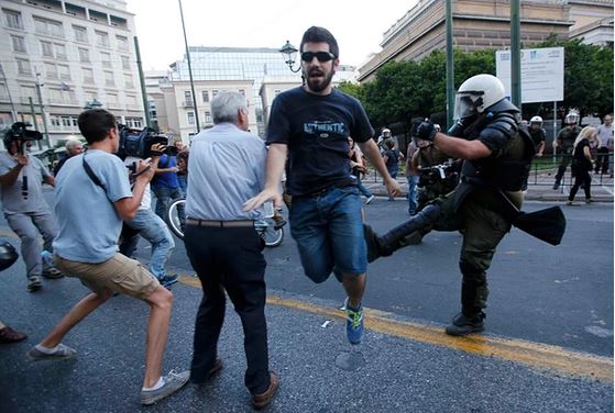 Ένταση ξέσπασε νωρίτερα στην οδό Σταδίου ανάμεσα σε άνδρες των ΜΑΤ και διαδηλωτές που πραγματοποιούσαν πορεία με σύνθημα “Όχι στο νέο Μνημόνιο”.
