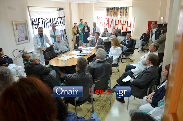Οι εργαζόμενοι του νοσοκομείου Μεσολογγίου είχαν προαναγγείλει ότι εάν δεν αποχωρήσει ο διοικητής από το νοσοκομείο θα πραγματοποιήσουν την γενική τους συνέλευση στο γραφείο του. Πράγματι, ανήρτησαν πανό, στα οποία τον χαρακτηρίζουν ανεπιθύμητο και του ζήτησαν να φύγει από το γραφείο του, όμως εκείνος αρνήθηκε και παρέμεινε στη συνεδρίαση των εργαζομένων.