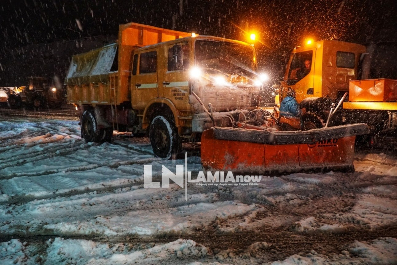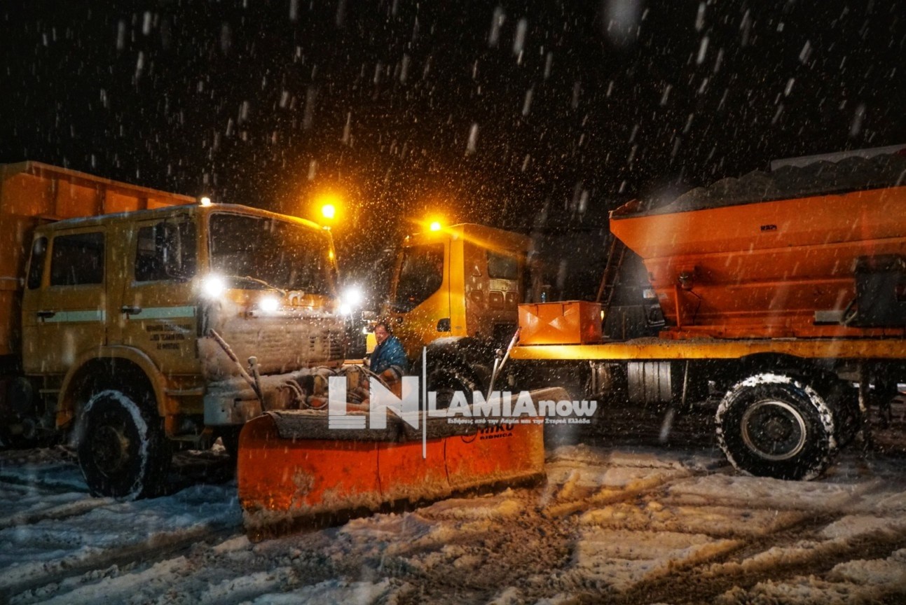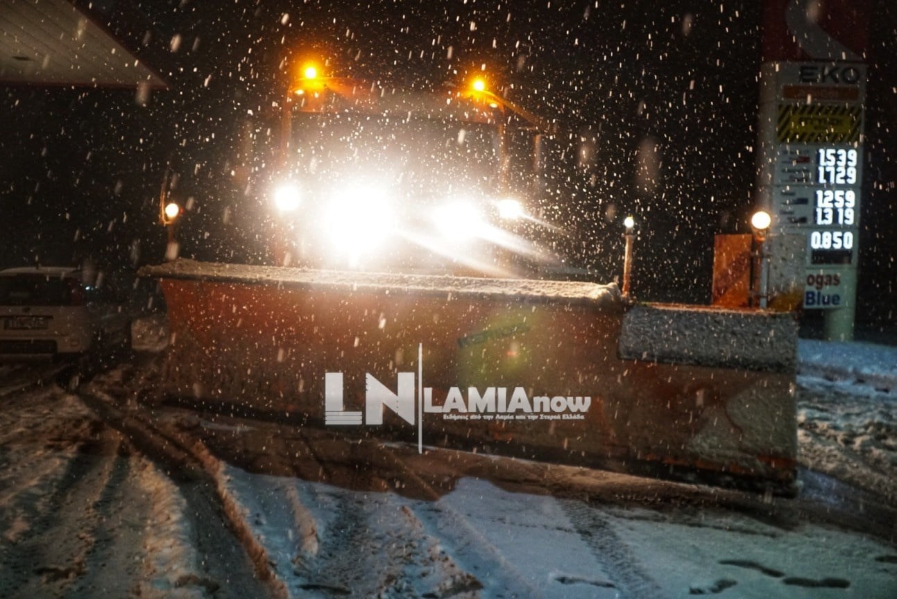 Χιονοθύελλα στον δρόμο Λαμίας – Δομοκού, με τις αλατιέρες να ενεργούν συνεχώς για να μην δημιουργηθεί ζήτημα στο εθνικό οδικό δίκτυο. Συνδράμει όπου χρειάζεται και η αστυνομία.