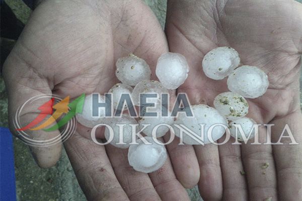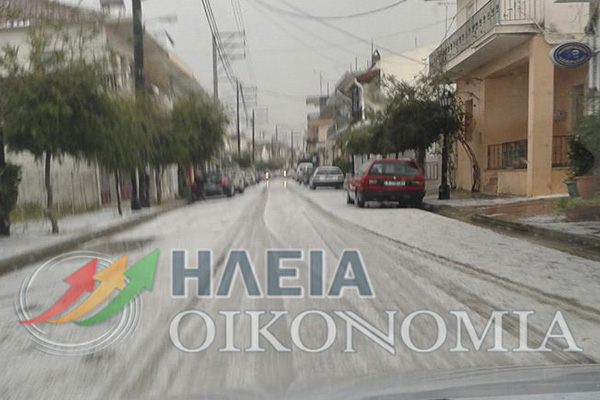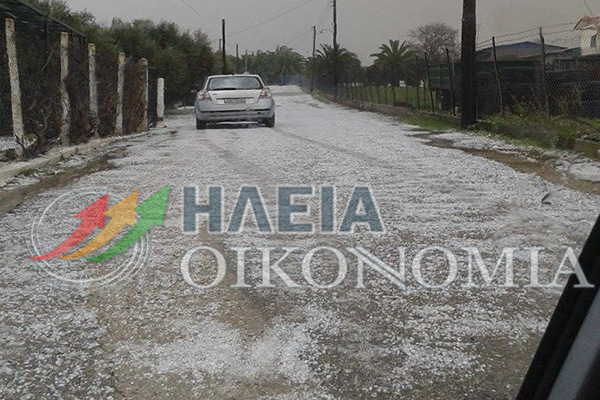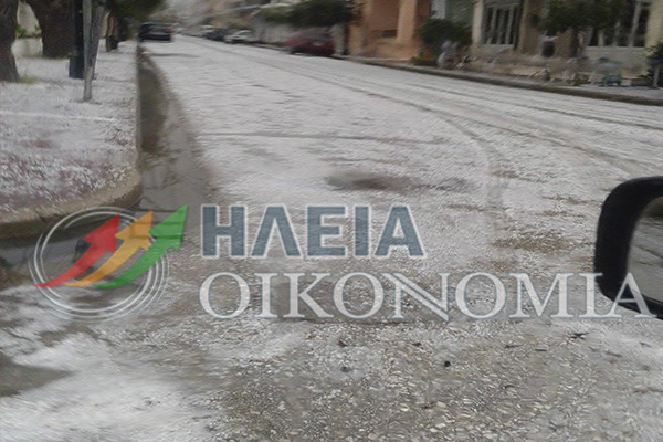 Έντονη χαλαζόπτωση πραγματοποιήθηκε σήμερα το πρωί στην περιοχή του Τραγανού στην Ηλεία. Οι δρόμοι γέμισαν μέσα σε λίγα λεπτά με χαλάζι σε μέγεθος καρυδιού.