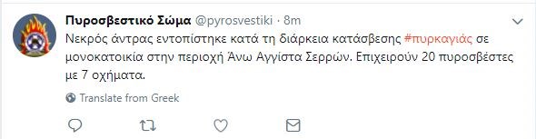 Στο σημείο επιχειρούν 20 πυροσβέστες με 7 οχήματα. Δείτε το tweet της Πυροσβεστικής: